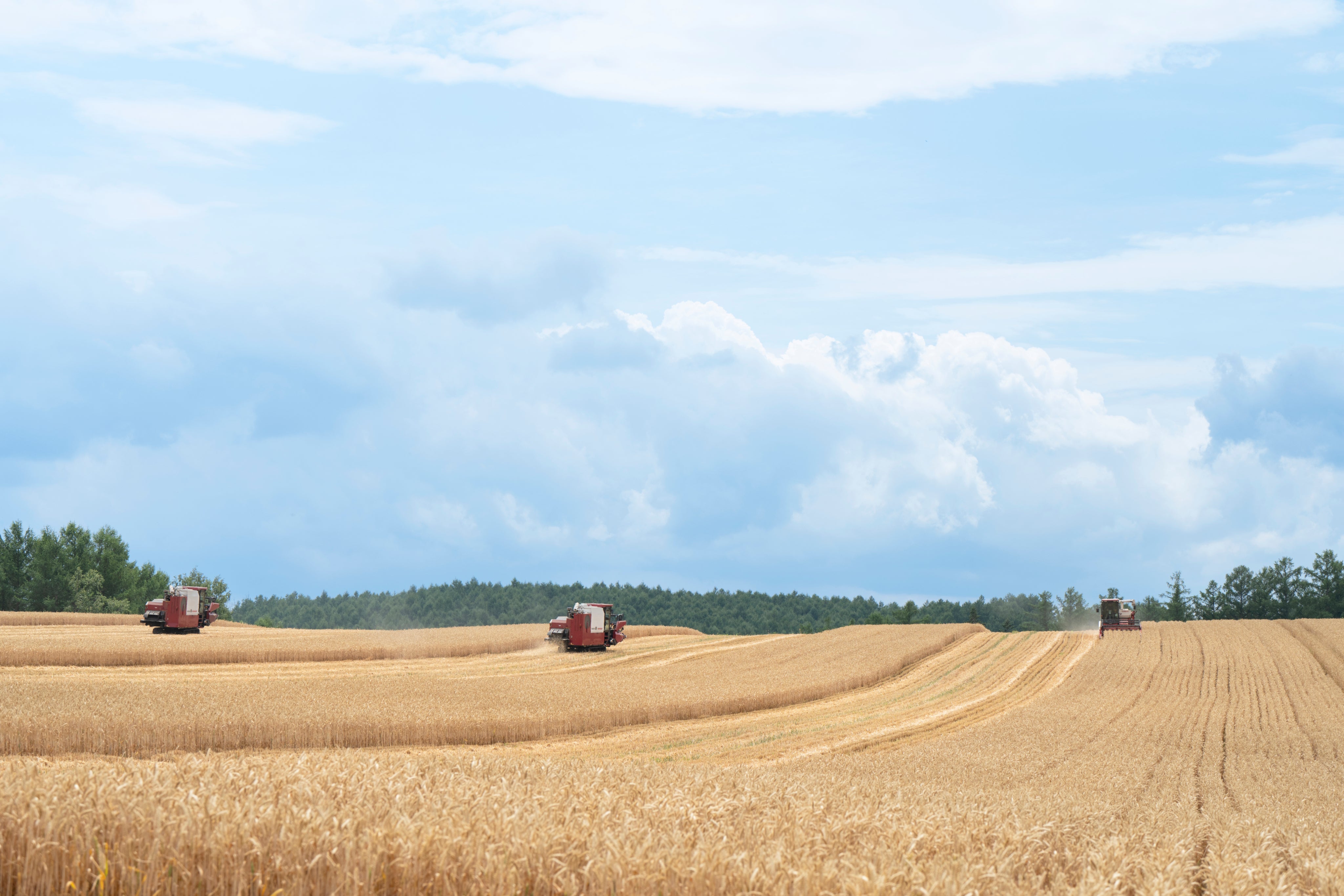 当農場で収穫されたキタノカオリ小麦100%の強力粉や、雪アスパラ®、春アスパラ、ジャガイモ、トウモロコシを、多数のベーカリー様やレストラン様でご利用いただいております。私たちが作った農産物によって、事業者の皆様の商品価値を高めるお手伝いをしたいと願っています。