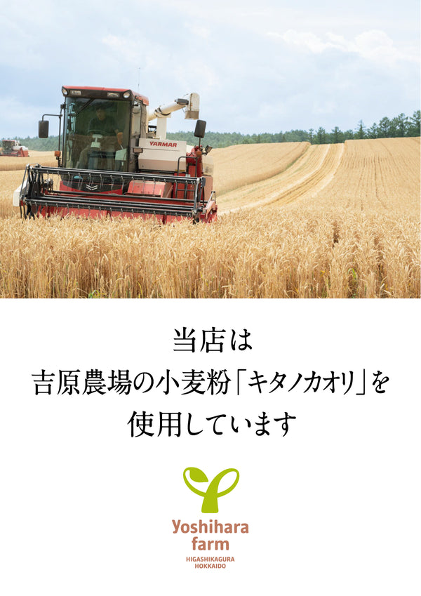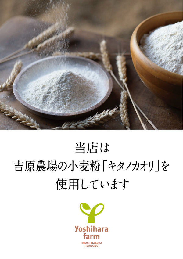キタノカオリ小麦100%の強力粉です。ほんのり黄色みがかり、きめが細かく、パン作りに適しています。キタノカオリは、栽培が難しいことから近年収穫量が減少しており、希少となりつつある品種です。 東神楽産キタノカオリ100は、小麦粉本来の風味がきわだって強く、パンにしたときに豊かな甘みが感じられます。同じキタノカオリの小麦粉の中でも、味わいだけではなく、吸水性やふくらみもよい、とベーカリー様からご好評をいただいています。